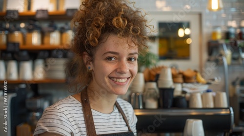 Portrait of a young happy girl - barista in a cafe