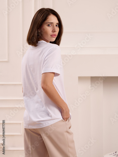 portrait of a young woman, stylish clothes. Shooting in studio.