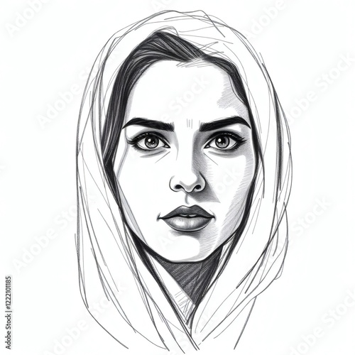 Portrait of a young woman with a headscarf showcasing expressive features and captivating eyes