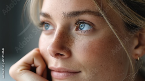 Portrait of a Young Woman With Blue Eyes in Soft Focus Natural Light Generative AI