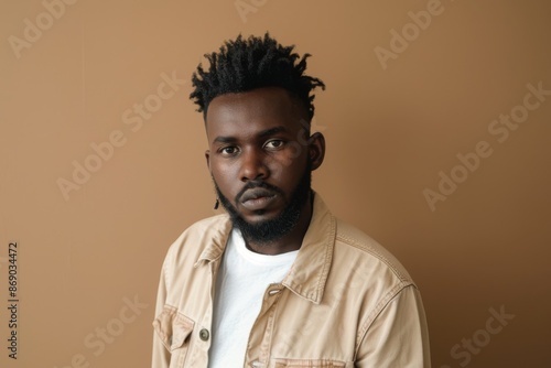 portrait of adult Black man looking at camera in studio