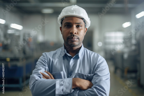 Portrait of african American man, factory worker, AI generated Generative AI