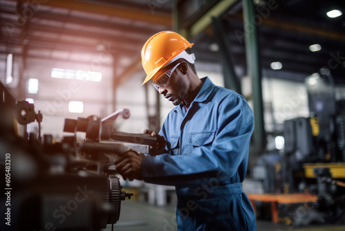 Portrait of african American man, factory worker, AI generated Generative AI