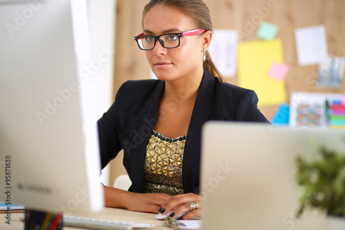 Portrait of an attractive young businesswoman sitting in front of a computer