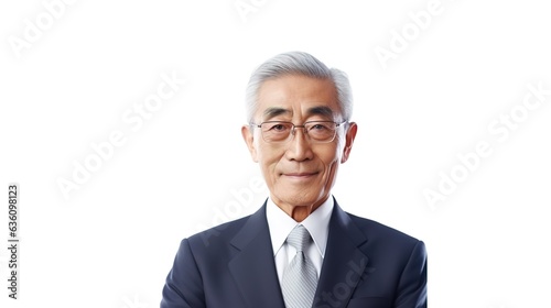 Portrait of an elderly Asian man on a white background. generative ai