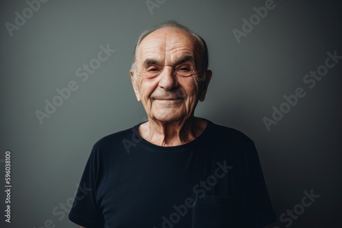 Portrait of an elderly man in a black T-shirt.