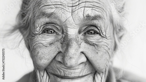 Portrait of an elderly person with a wise and weathered face, captured in a black-and-white image, showcasing the artistry of aging and the depth of life experience
