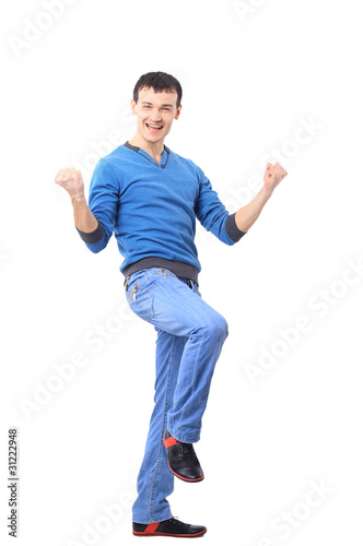 Portrait of an emotional young man. Isolated over white