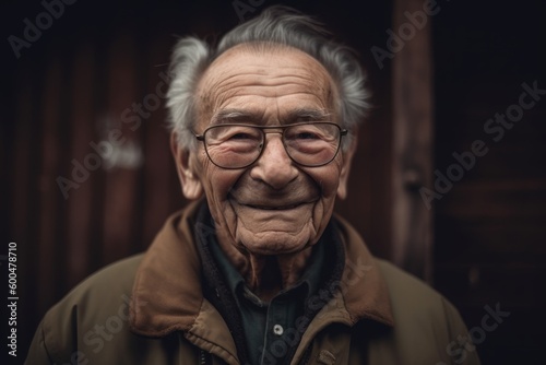 Portrait of an old asian man with glasses. Vintage tone.