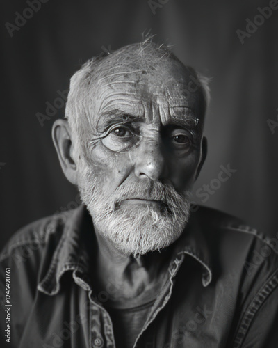 Portrait of an older worker with a weathered face, powerful storytelling image