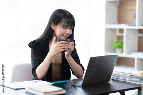 Portrait of Asian young female working on laptop at office