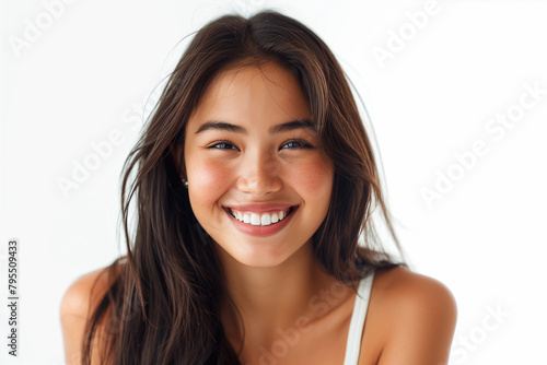 Portrait of beautiful asian young smiling woman. Cosmetology concept.