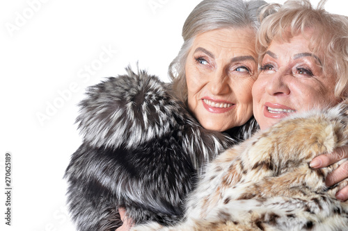 Portrait of beautiful senior women in fur coats