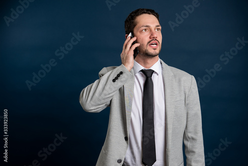 Portrait of business young male talking at telephone