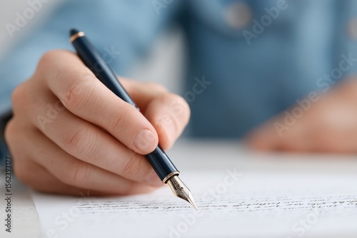 portrait of calligraphy expert demonstrating letter formation on camera for online language class