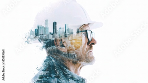 Portrait of Civil Engineer in Hardhat with Cityscape Background