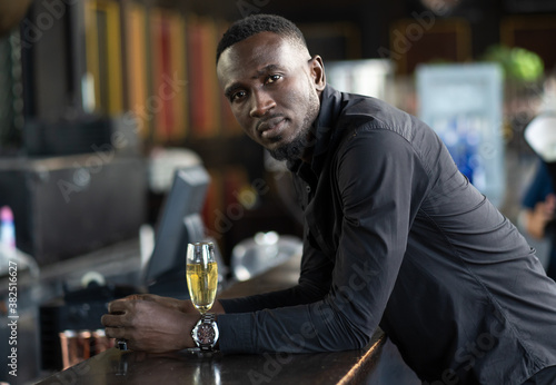 Portrait of confident African American businessman at nightclub.