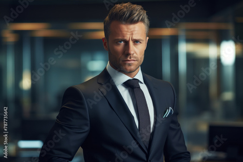 Portrait of confident smart businessman in suit in office