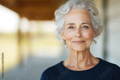 portrait of elderly woman with deep wrinkles and wise eyes gently smiling as she recalls memories from past