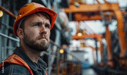 Portrait of empowered male maritime professional at work. Hard working man at the ship. Maritime concept. Work concept. Man concept. Male concept. Guy concept.