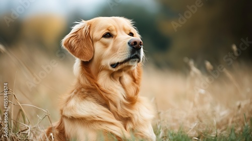 Portrait Of Golden Retriever Dog In Nature With Autumn Colors And Soft Focus : Generative AI