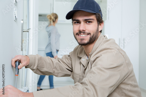 portrait of handsome technician fixing something