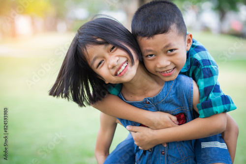 Portrait of happy boy and girl embracing each other