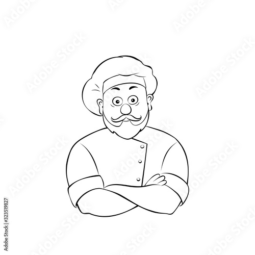 Portrait of happy old man with a mustache and beard,cook crossing hands.Vector illustration in cartoon style.