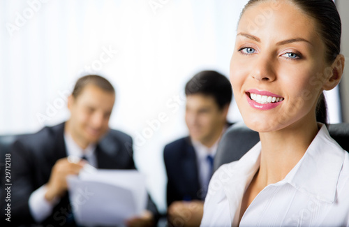 Portrait of happy smiling businesswoman and colleagues