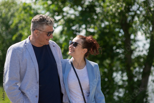 Portrait of hot and sexy young woman enjoying hug of her elderly husband .Couple with Age Different