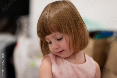 portrait of little girl playing at home