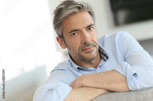 Portrait of mature man relaxing in sofa