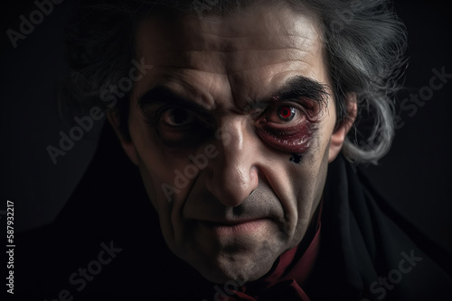 portrait of old frightening vampire man count dracula demon. Generative AI illustration