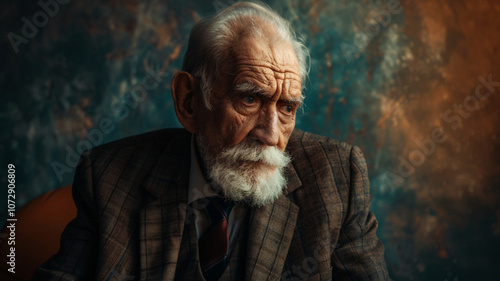 portrait of old man in an impeccably tailored, luxurious suit, embodying refinement and legacy.