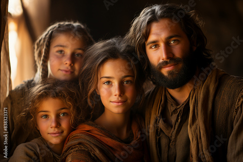 Portrait of people believing family praying Jesus Christ Son of God generative AI