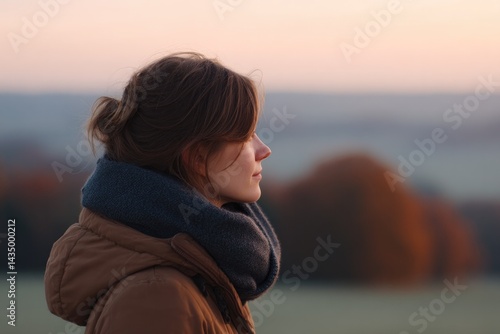 portrait of person embodying rural life captured against blurred countryside backdrop