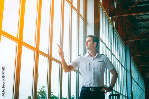 portrait of Pilot of Helicopter standing and looking away waiting Flight by terminal building