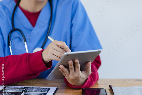 Portrait of professional doctor woman at hospital. Latin nurse, Smiling female doctor in lab coat.