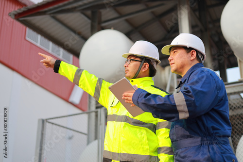 Portrait of professional man engineer working checking work place to keep liquid helium in industry.