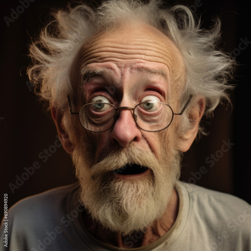 Portrait of shocked old man open mouth