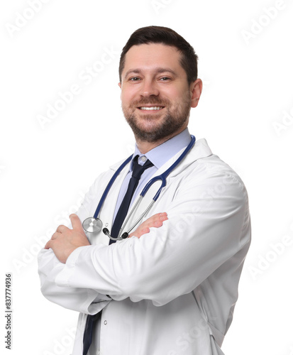Portrait of smiling doctor isolated on white