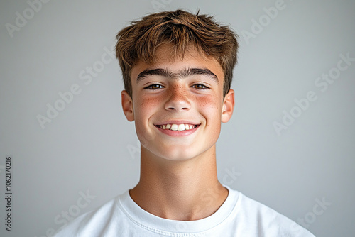 Portrait of smiling white cute teenage boy