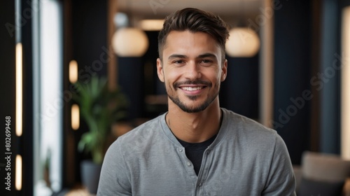 Portrait of successful senior businessman headshot of executive consultant looking at camera smiling inside modern home office building