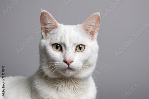 Portrait of Turkish Van cat looking at camera, copy space. Studio shot.