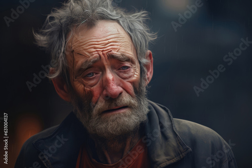 Portrait Of Worried Man. Poor Old Man Who Lost His Home