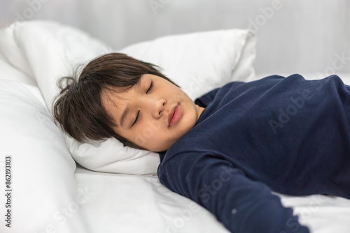 Portrait of young asian boy in a gray t-shirt, boy has short black hair and looking directly at camera with a neutral expression, innocence and simplicity of childhood, family, education and childcare