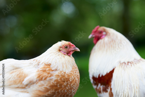 Portrait of young chicken and rooster
