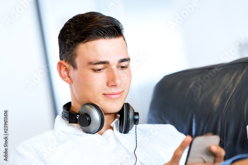 Portrait of young man holding phone