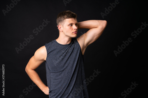 Portrait of young man over isolated black background