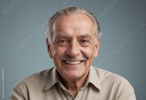 Portrait view of a regular happy smiling San Marino old man, ultra realistic, candid, social media, avatar image, plain solid background
